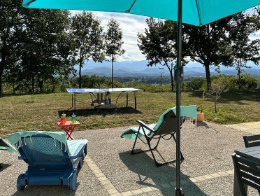 Situé au sommet d’une colline, avec vue à 180 ° sur la chaîne des Pyrénées, le gîte « Chez Hubélise « vous accueille avec ses 3 chambres pour une capacité de 6 personnes, sur un terrain de 6000 m².. Vous pourrez vous détendre dans le SPA, après une partie de pétanque, de badminton, de ping-pong, ou tout simplement de fléchettes…. Vous pourrez observer à la jumelle le vol des milans royaux, et les ébats des chevreuils qui viennent jouer fréquemment entre les chênes….